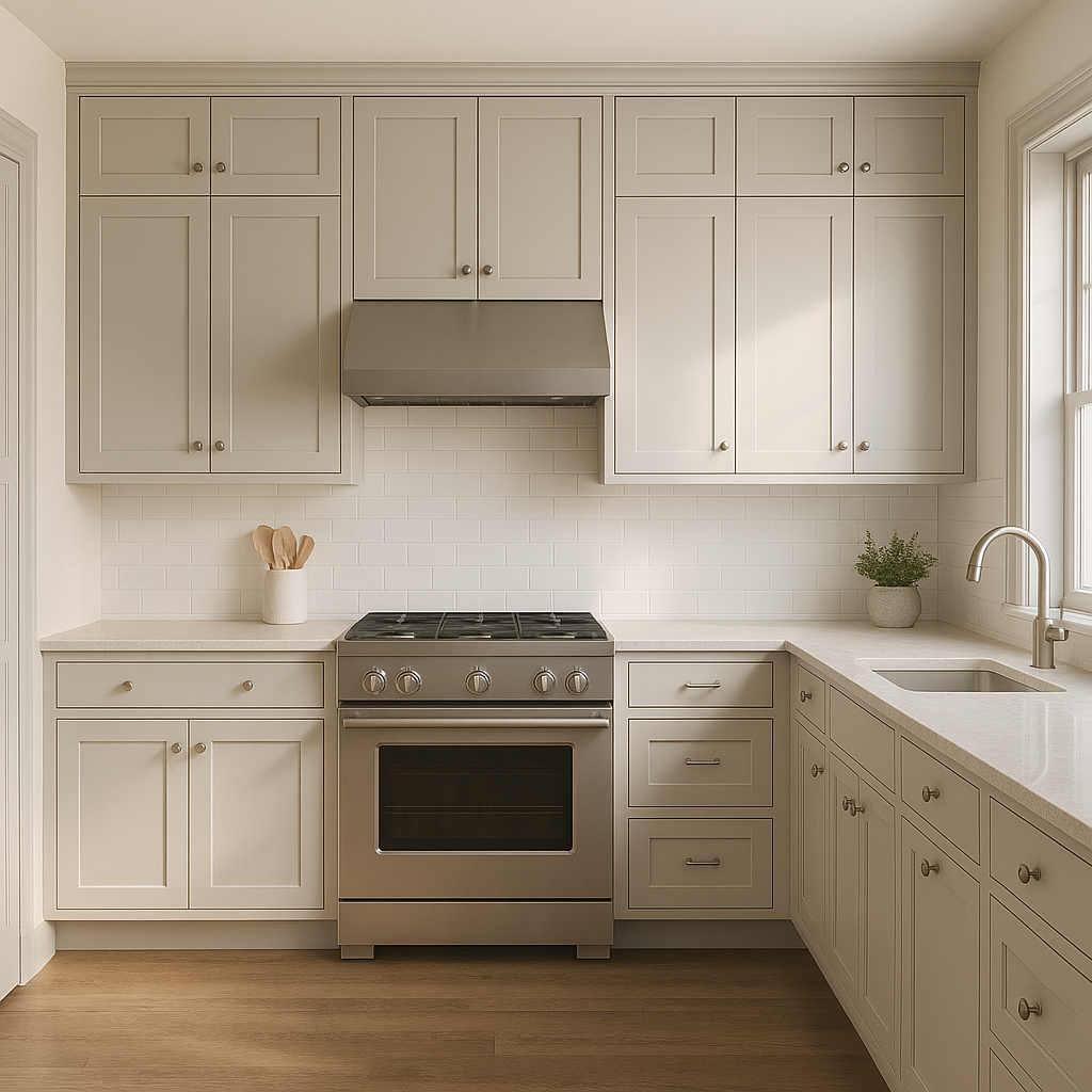 In bathrooms, Shoreline’s light and airy nature enhances a spa-like atmosphere. Pair it with marble tiles, polished nickel fixtures, and frosted glass to achieve a luxurious aesthetic.