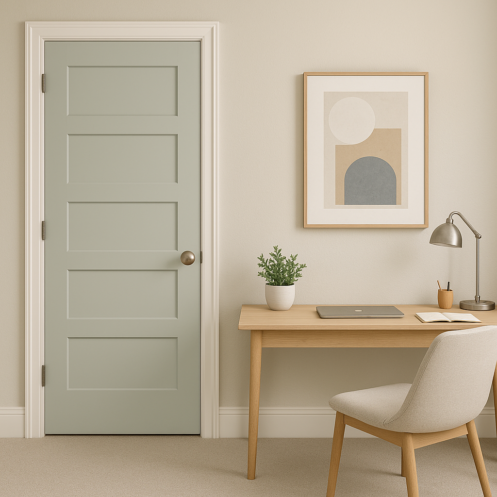 Horizon is a cooler gray with gentle blue undertones that give it a soft and airy quality. These undertones make it ideal for spaces where you want to evoke a sense of openness and calmness. Unlike warmer grays that lean toward taupe or beige, Horizon leans more toward a crisp, clean ambiance without feeling stark. It’s worth noting that the blue undertones may become more pronounced in rooms with cooler lighting, such as north-facing spaces, while appearing more neutral in areas with warmer lighting.