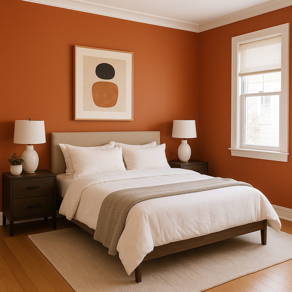 Transform a living room, bedroom, or dining space with a Rust accent wall. Its bold, earthy tone lends a sense of drama while maintaining warmth. Pair it with neutral furniture and décor to create a balanced yet impactful look.