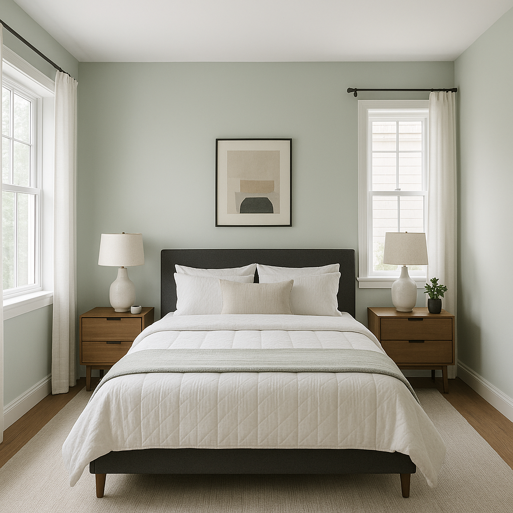 Monochromatic Harmony: If you want to emphasize Crystalline’s green undertones, layer it with other pale greens like Palladian Blue (HC-144) or Soft Fern (2144-40) for a monochromatic, nature-inspired palette.