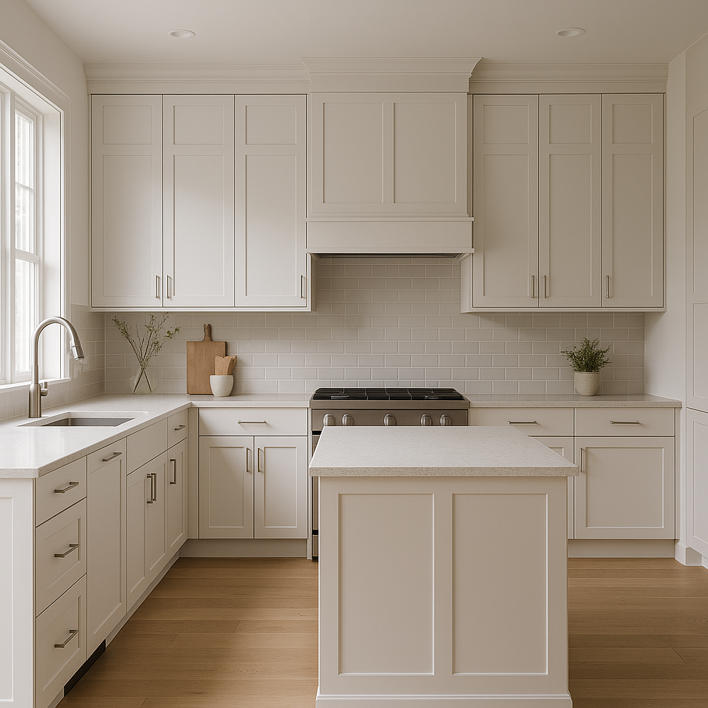 For kitchens, Frostine offers a sleek and modern alternative to traditional whites. It pairs beautifully with stainless steel appliances, marble countertops, and navy or charcoal cabinetry.