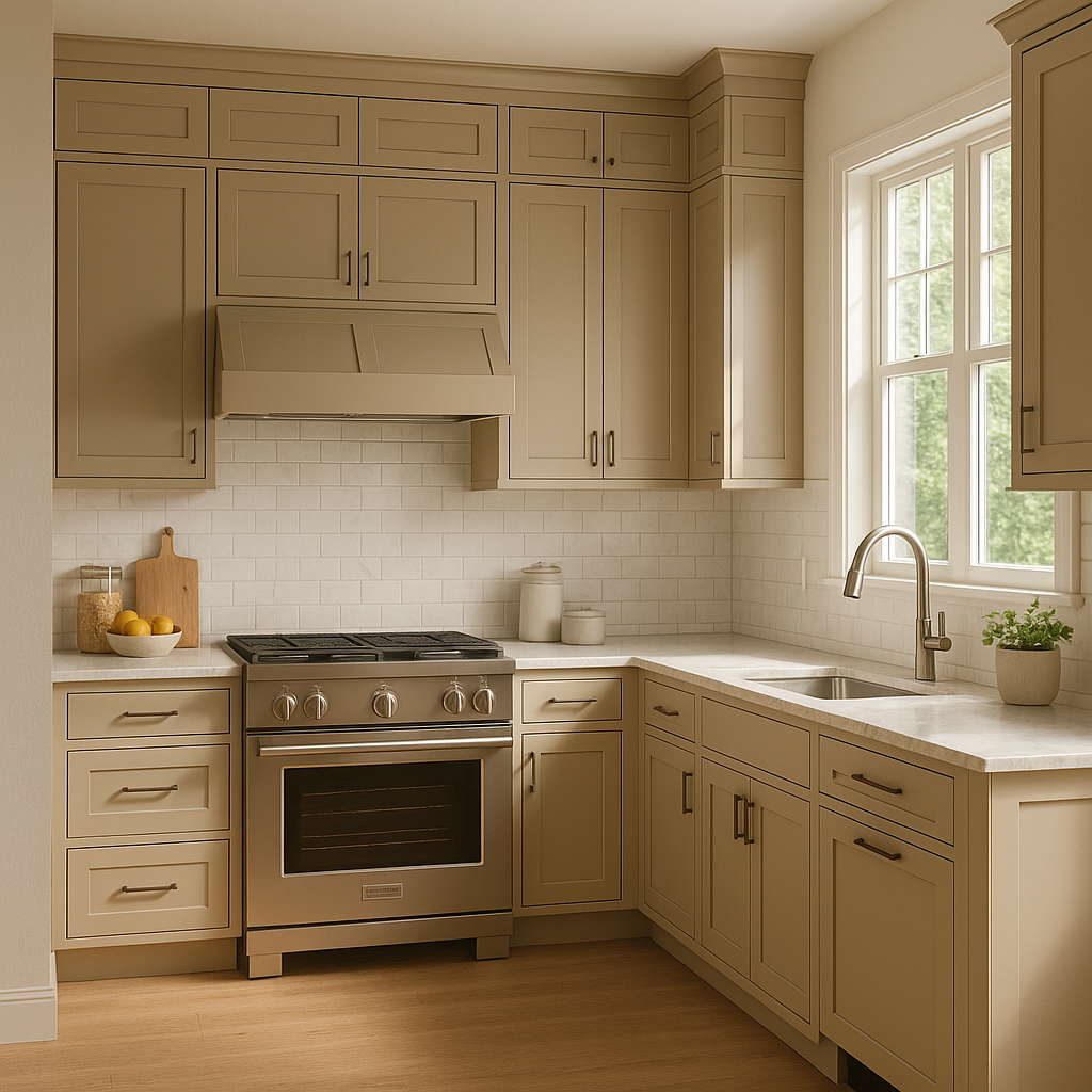 In kitchens, Lenox Tan works beautifully on walls or cabinetry. Pair it with white or light gray countertops and backsplashes for a fresh and balanced look. Add warmth through wood accents or brass hardware to tie the palette together.
