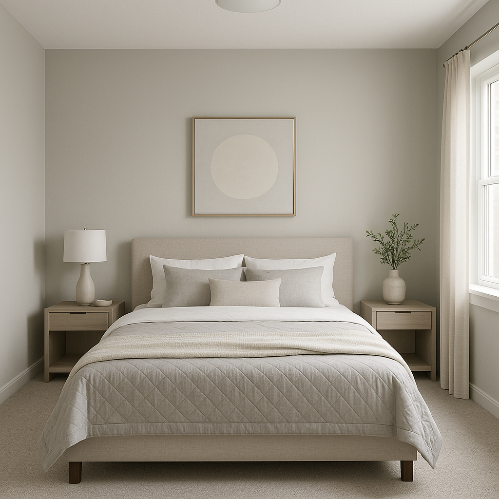 Pearl Gray provides a sophisticated foundation for living rooms. Pair it with plush furniture in warm neutrals or jewel tones to create a space that feels both elegant and inviting. Add metallic accents like brushed nickel or chrome to enhance its cool undertones.
