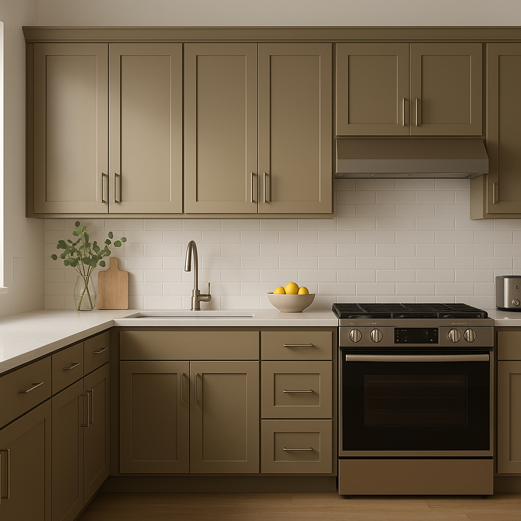 Quiver Tan is more than just a standard tan—it carries subtle undertones that make it unique. While its primary tone is a warm beige, it leans ever so slightly into green undertones. These undertones give it a soft, organic quality that helps it blend seamlessly with natural materials like wood, stone, and leather. The green undertones are understated enough that they won't dominate the space but will add depth and complexity to the color, making it feel alive and dynamic in different lighting conditions.