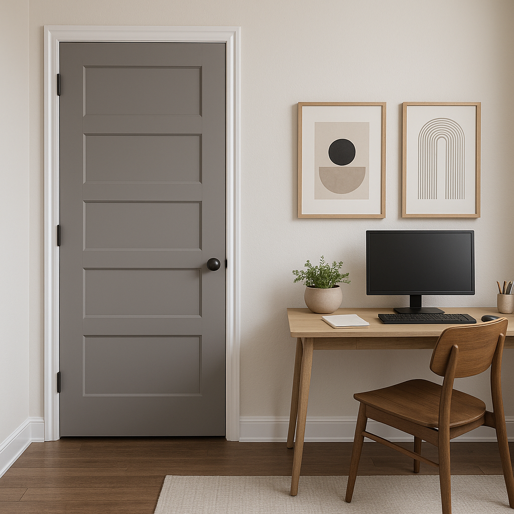 In a home office, Swanky Gray provides a sophisticated backdrop that encourages focus and productivity. Pair it with bold, dark furniture for a professional aesthetic or lighter wood tones for a more relaxed, Scandinavian-inspired design.