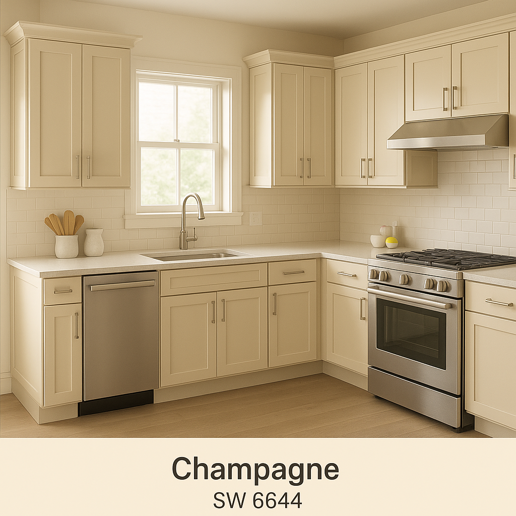 Sherwin-Williams Champagne (SW 6644) is a luxurious paint color that effortlessly combines warmth and subtle elegance, making it a versatile choice for a variety of interior design styles. This soft beige hue has an inviting personality, perfect for creating cozy, sophisticated spaces that feel refined yet approachable. Champagne exudes a timeless charm, making it a popular choice for homeowners who seek a neutral tone with depth and character.