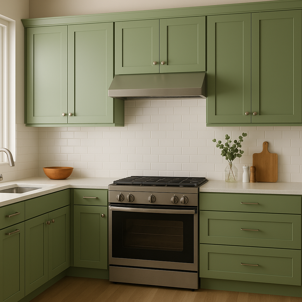 Organic Green makes for a striking choice in kitchens, particularly when used on cabinets or backsplash tiles. Its earthy undertones pair beautifully with brass or copper hardware, adding a touch of modern elegance to a space that thrives on functionality.