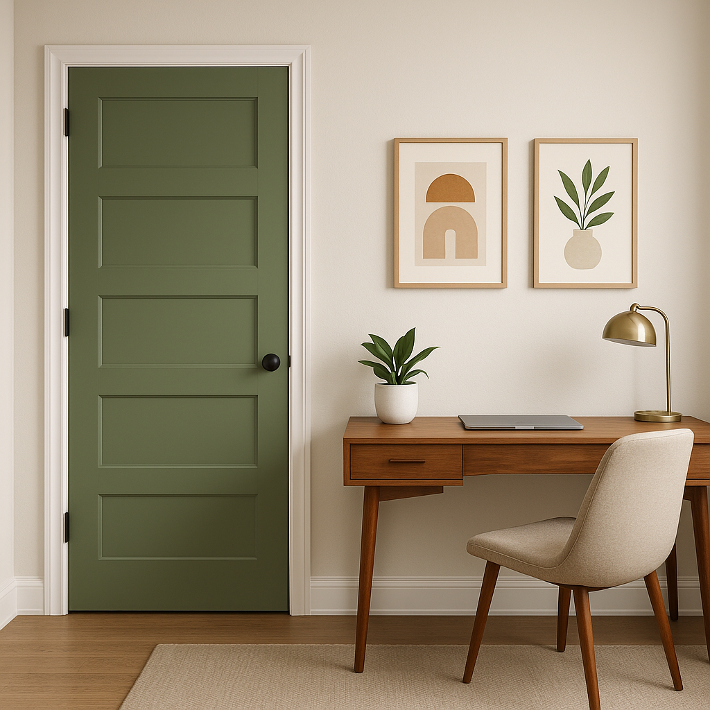From entryways to home offices, Organic Green can serve as the perfect accent color that injects personality into smaller spaces. Use it on furniture, shelving, or even interior doors for a subtle yet impactful design statement.