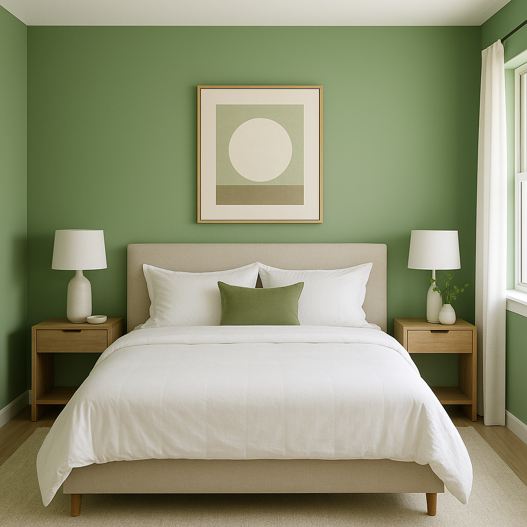 For a calming retreat, Organic Green works beautifully as a wall color complemented by neutral bedding and soft textures like linen or velvet. Its soothing presence fosters relaxation while maintaining a fresh, uplifting vibe.