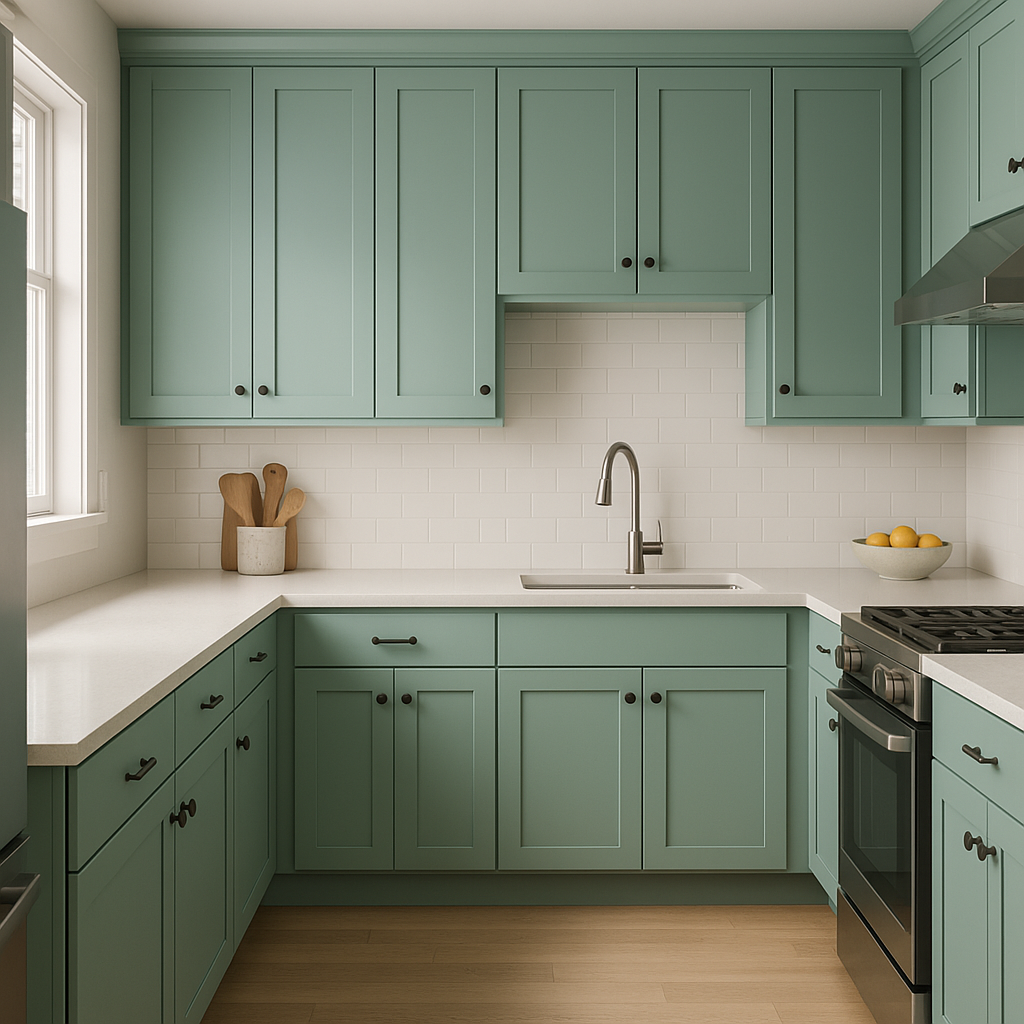 Rivulet features subtle green undertones that add depth and complexity to its overall blue-green base. These soft green notes make the color feel organic and grounded, while the slight hint of blue lends a crisp, clean quality. The undertones shift depending on lighting conditions, appearing more verdant in natural light and cooler in artificial lighting. This dynamic interplay makes Rivulet an adaptable choice for both modern and classic aesthetics.