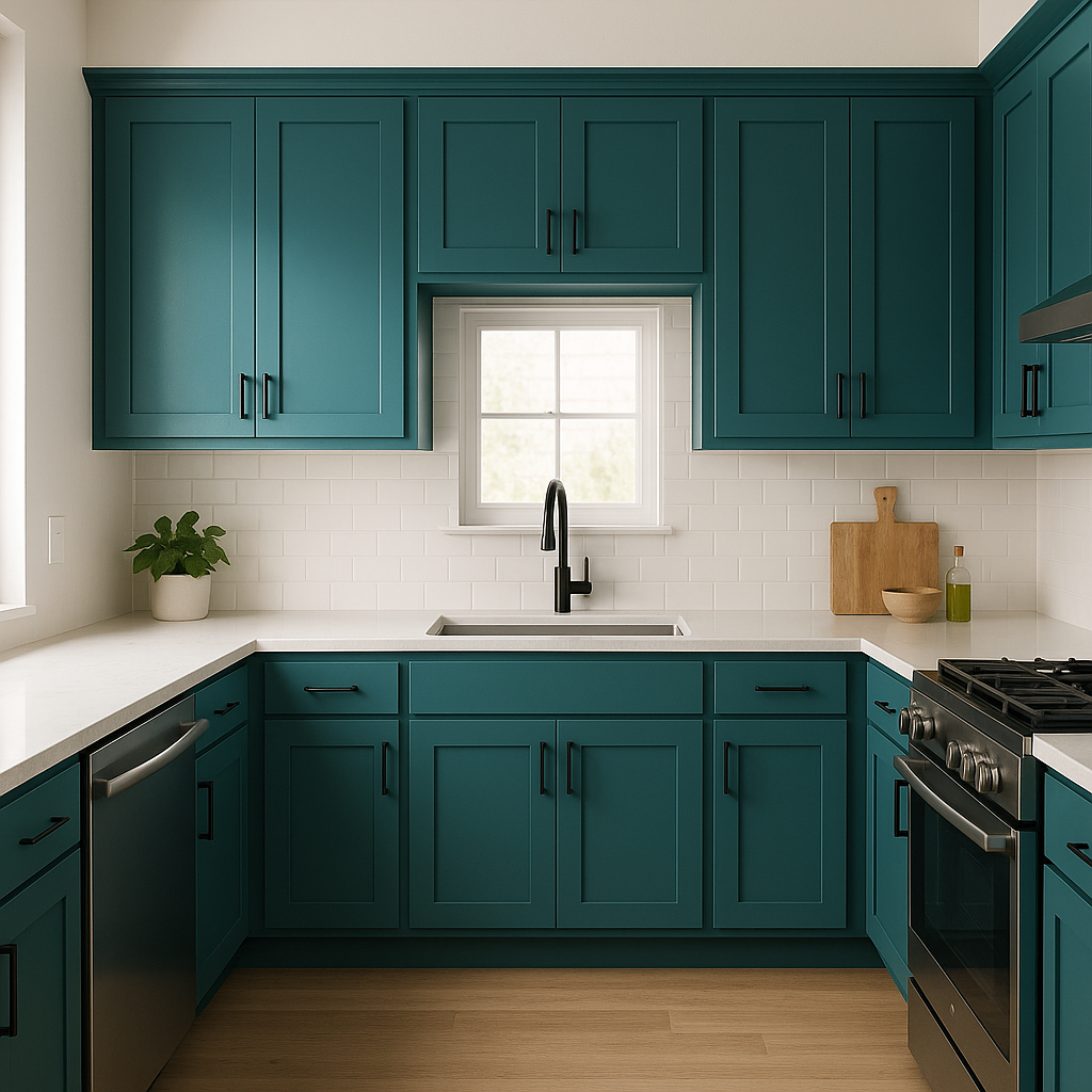 Transform your kitchen or bathroom with cabinetry painted in Intense Teal. The color adds richness and depth, making your space feel elevated and unique. Similarly, refinishing furniture in this vibrant shade can breathe new life into old pieces, creating custom designs full of personality.