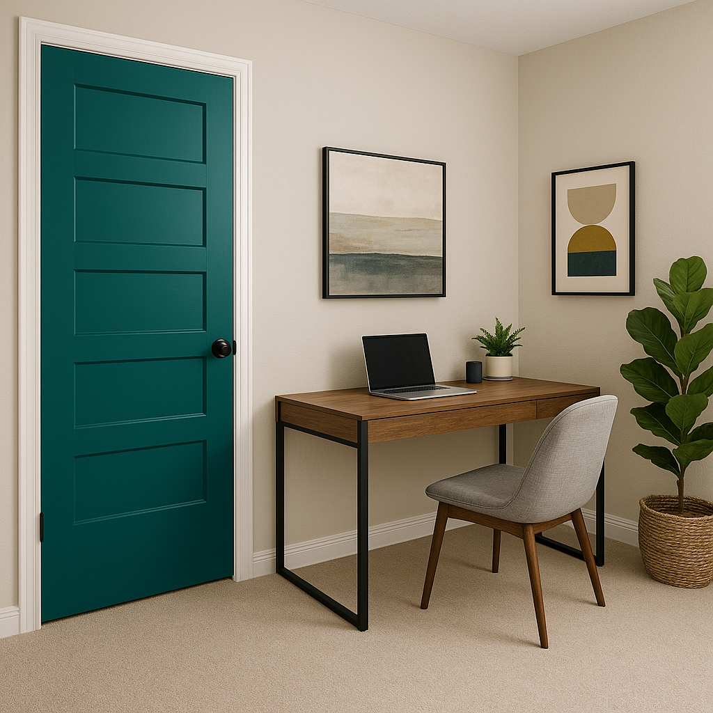 Use Intense Teal on a single accent wall to draw attention and create a focal point in a room. It works beautifully in living rooms, dining areas, and even bedrooms. For a bold twist, paint a ceiling in Intense Teal and pair it with neutral walls to create a dramatic, unexpected effect.