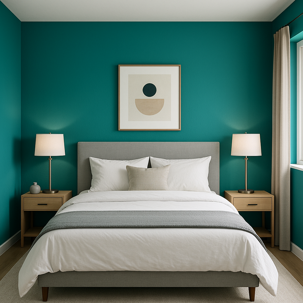 Intense Teal is a versatile color that can be used in various design applications to create bold and unforgettable spaces. Whether you’re looking to make a statement with an accent wall, add drama to a room, or infuse a pop of color into your décor, here are some ideas for incorporating Intense Teal into your home or workspace: