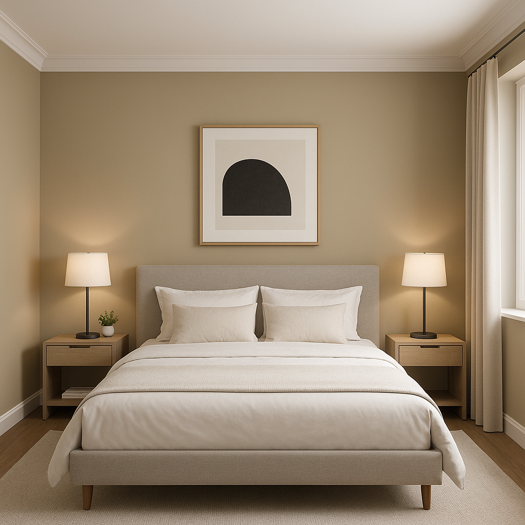 For a calming and restful bedroom, Khaki Shade provides a soothing backdrop. Layer it with linens and decor in shades of white, taupe, or sage green. Incorporate metallic accents in brushed gold or bronze for a touch of luxury.