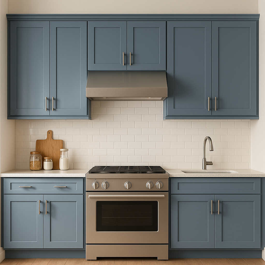 Georgian Revival Blue is an exceptional choice for kitchen or bathroom cabinetry. Its timeless quality pairs well with brass or gold hardware for a luxurious touch. It can also be used for painted furniture pieces, such as dining chairs, desks, or side tables, to add a pop of color in smaller doses.