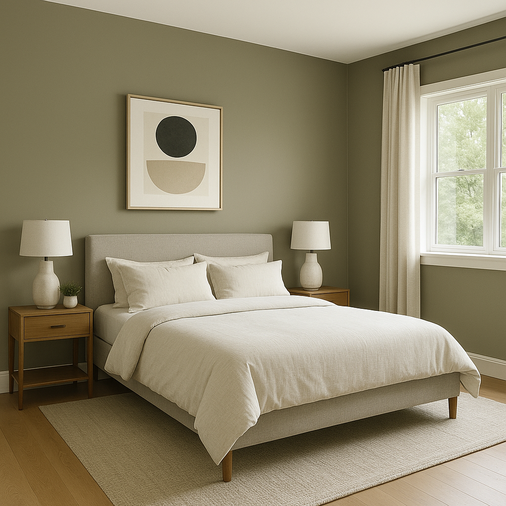 Lighting plays a crucial role in how Zeus appears in a space. In rooms with ample natural light, Zeus will show more of its olive undertones, giving it a vibrant yet earthy feel. In low-light environments, it takes on a richer, deeper tone, emphasizing its dramatic and grounding characteristics. Be sure to test the color in your space under different lighting conditions to understand how it interacts with your environment.