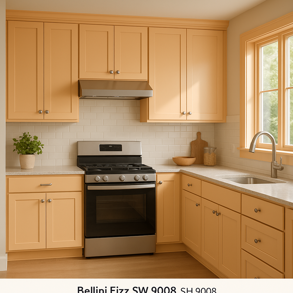 Warm kitchens and dining spaces are elevated with Bellini Fizz. Use it on cabinetry or as an accent wall to create a lively and inviting atmosphere. Pair it with natural wood finishes, white subway tiles, and metallic accents for a modern yet approachable look.