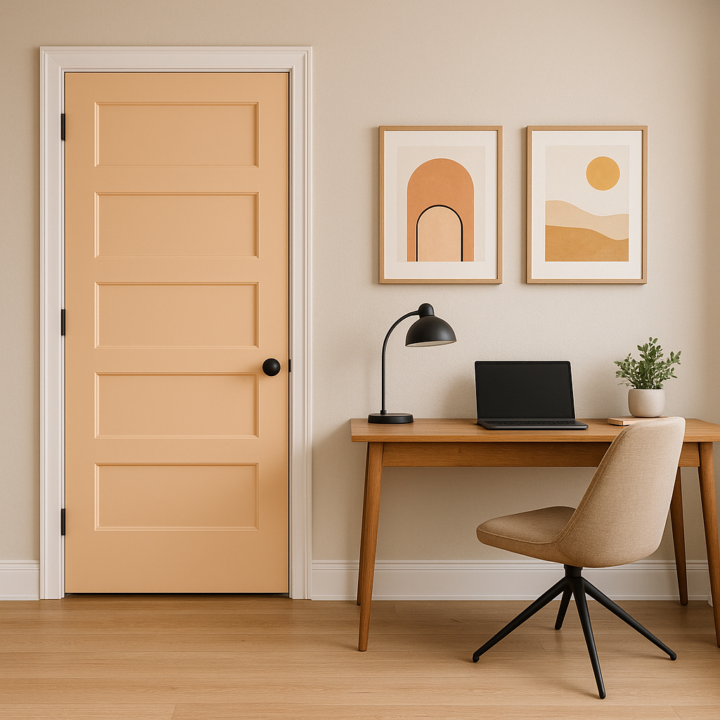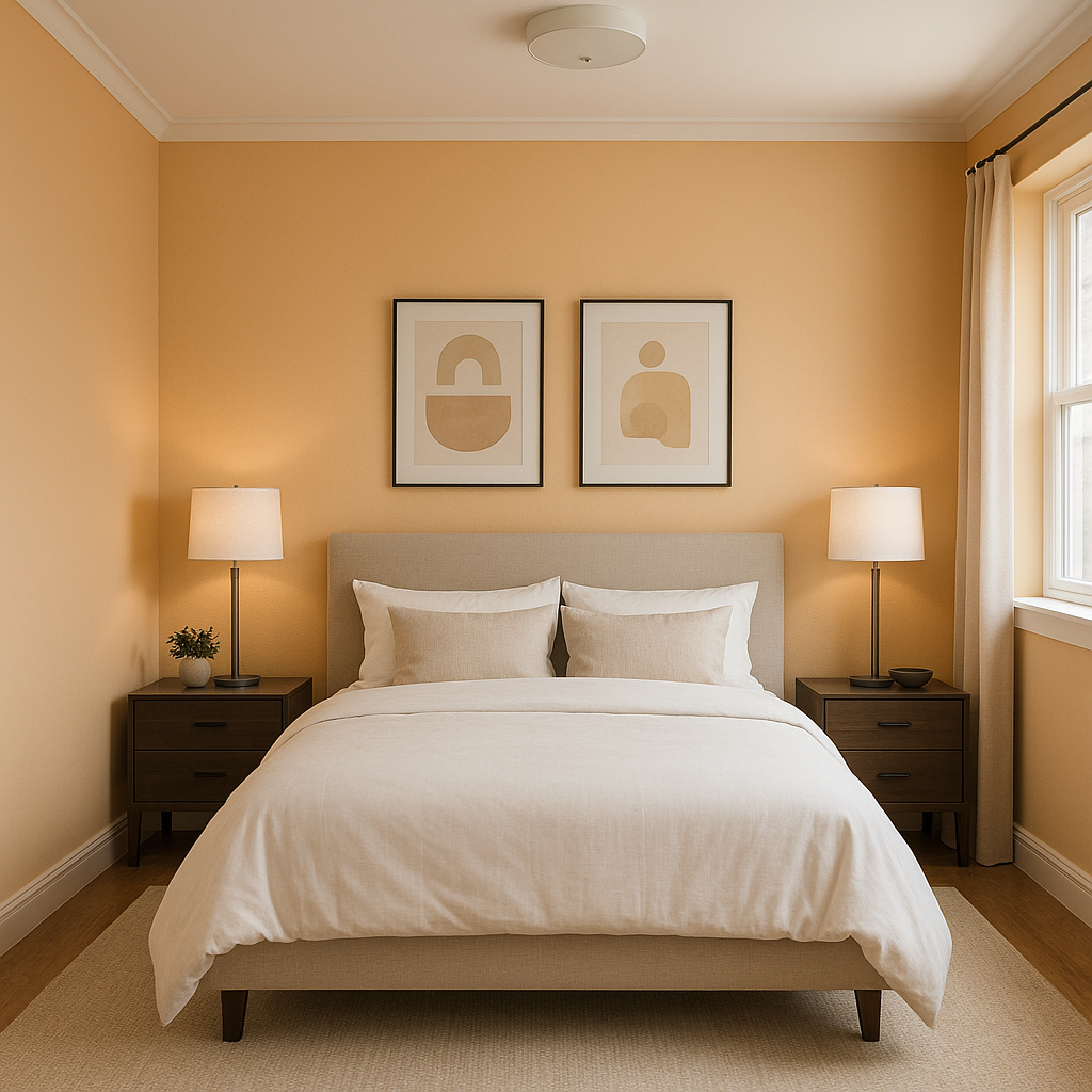 Bellini Fizz is also great for adding a pop of color to accent walls in spaces like home offices, foyers, or bedrooms. Its warm undertones make it an excellent backdrop for artwork, mirrors, or decorative shelving.