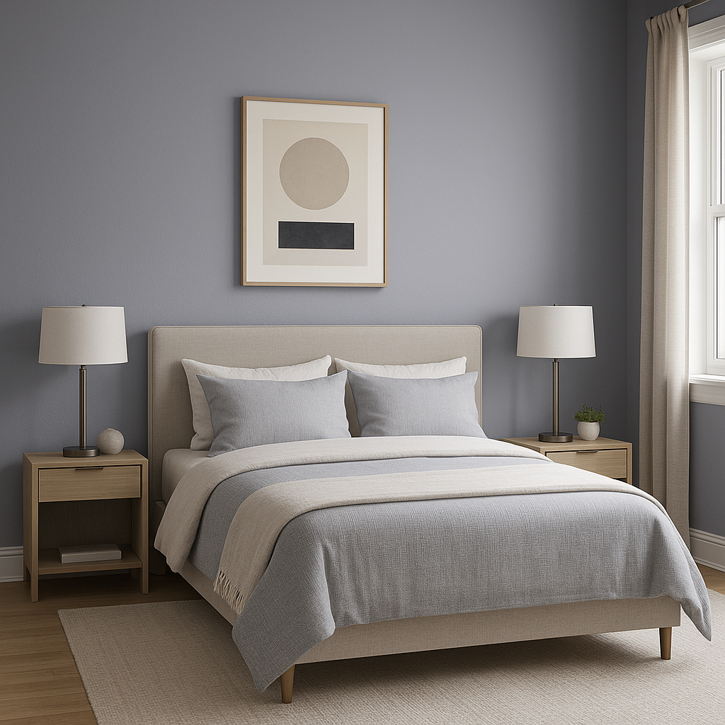 Dusty Heather is an exceptional choice for bedrooms, where a serene and soothing atmosphere is key. Its soft lavender tones promote relaxation, making it ideal for creating a calming retreat. Pair it with crisp white bedding and natural wood furniture for an airy, minimalist look, or layer in plush textures and deep jewel-toned accents for a more luxurious feel.