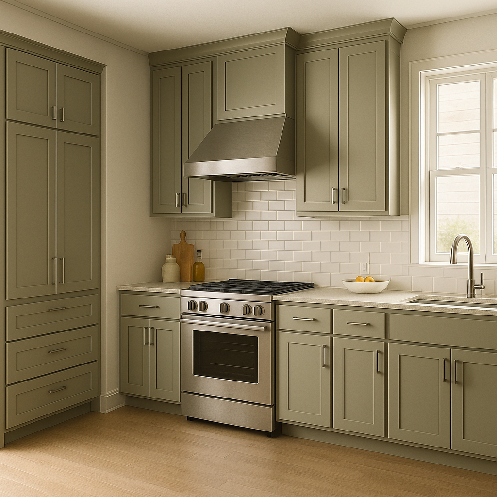 Bring understated elegance into your kitchen by using At Ease Soldier on cabinetry or walls. Pair it with white subway tiles, stone countertops, and brushed nickel or brass hardware for a contemporary farmhouse or transitional style. It also complements natural wood tones beautifully, creating a warm and inviting cooking space.