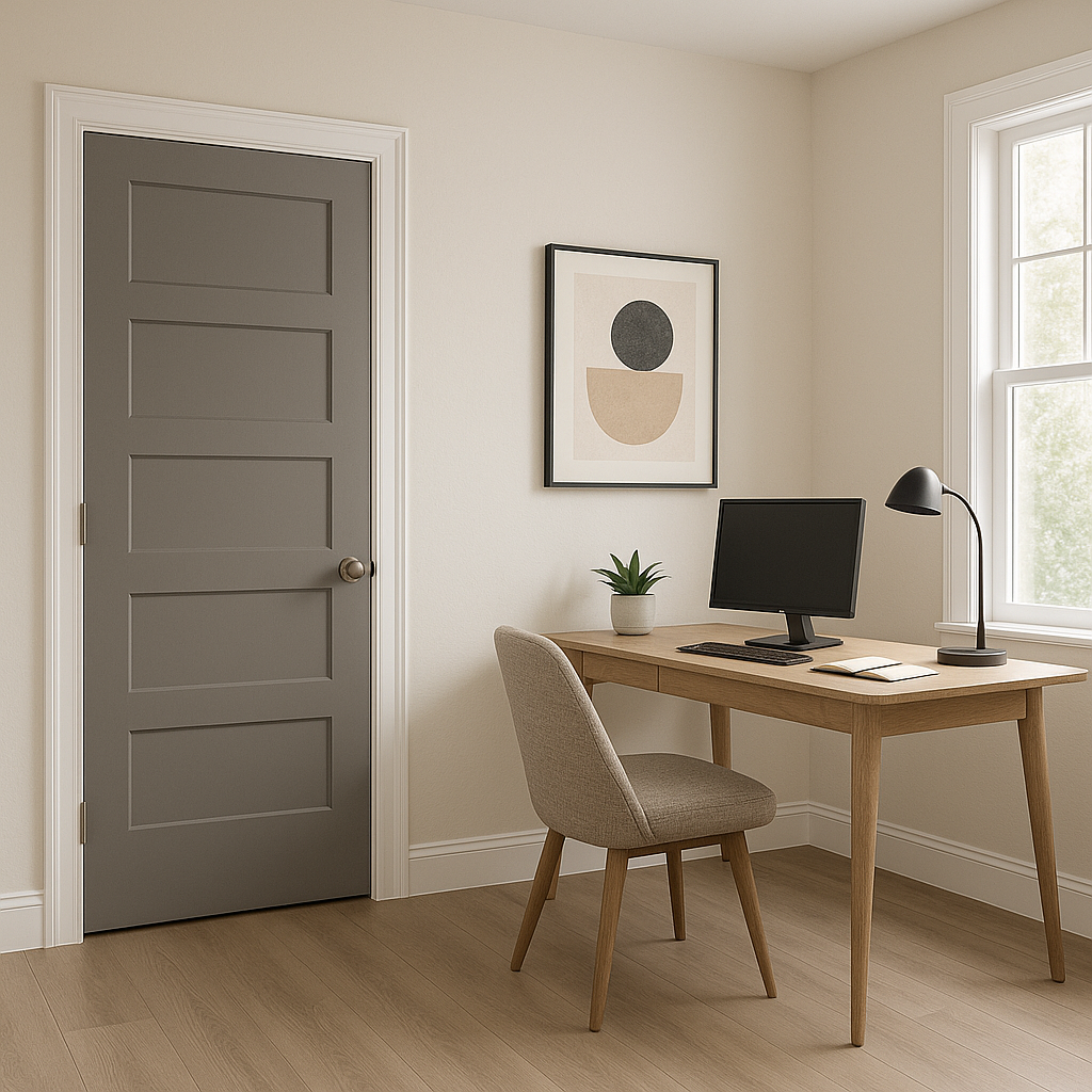 Choose African Gray for your home office to foster focus and productivity. Its cool undertones evoke a sense of calm while maintaining a professional and polished aesthetic. Pair it with dark wood furniture and clean lines for a modern workspace.